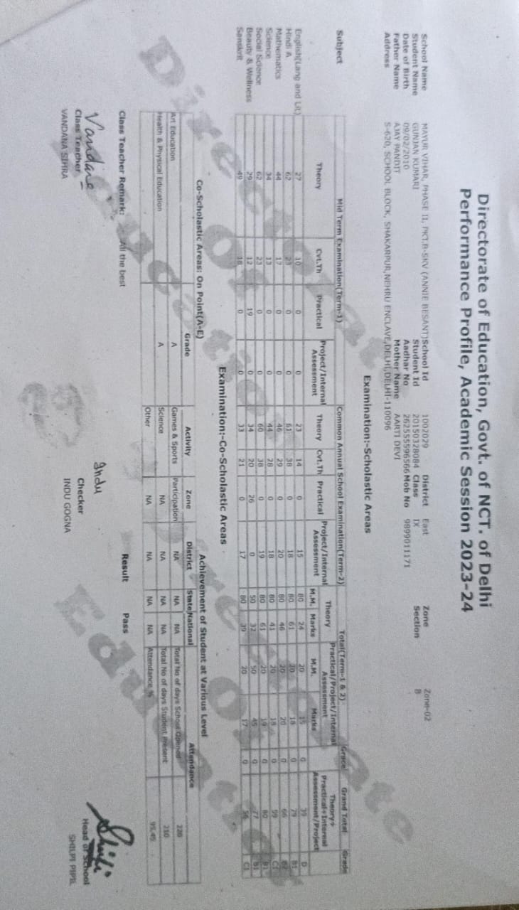 | Exam | Full Marks | Pass Marks | Marks Obtained |