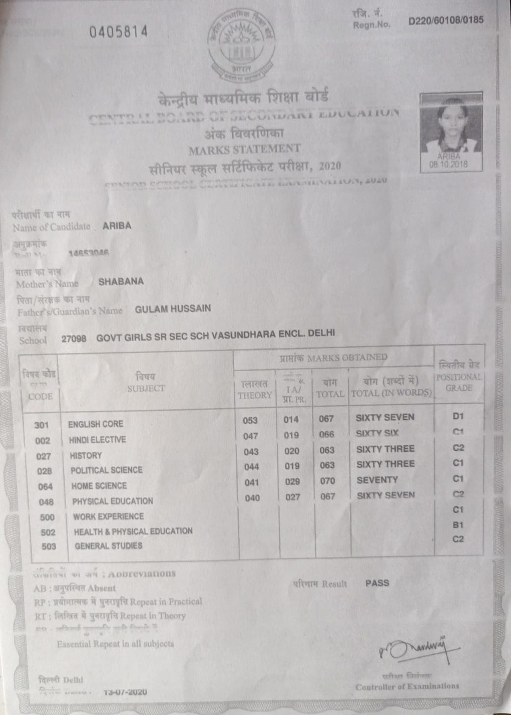 | Exam | Full Marks | Pass Marks | Marks Obtained |