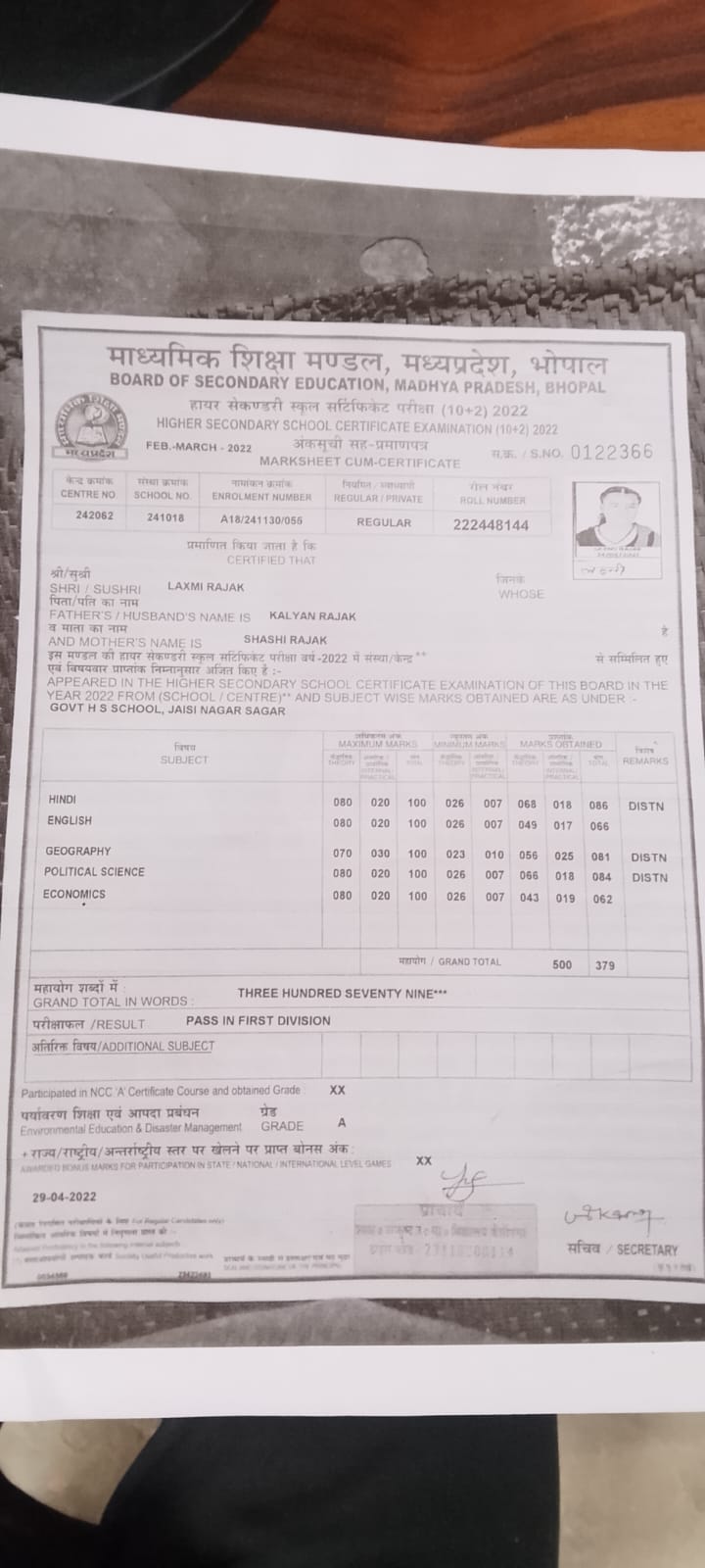 | Exam | Full Marks | Pass Marks | Marks Obtained |