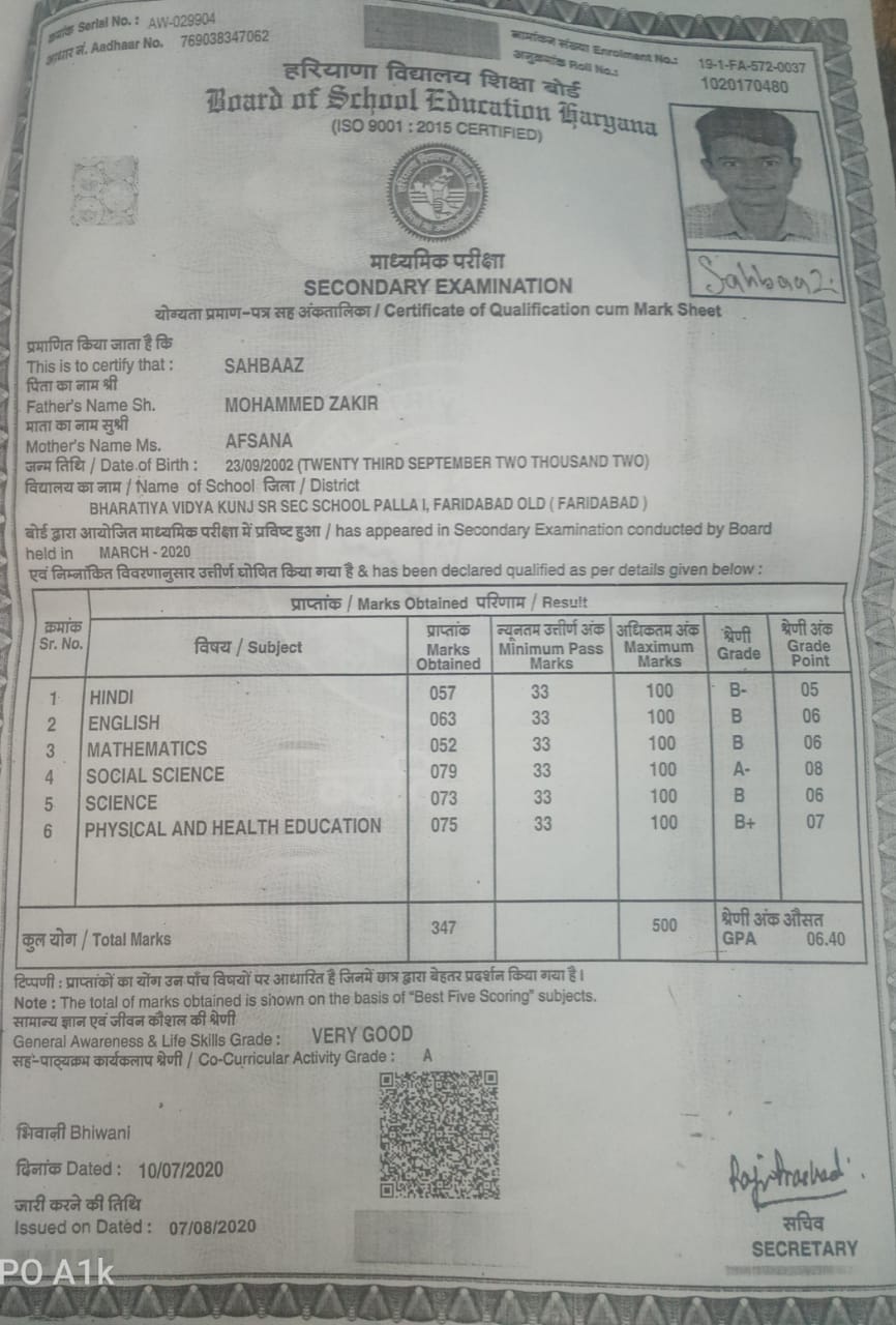 | Exam | Full Marks | Pass Marks | Marks Obtained |