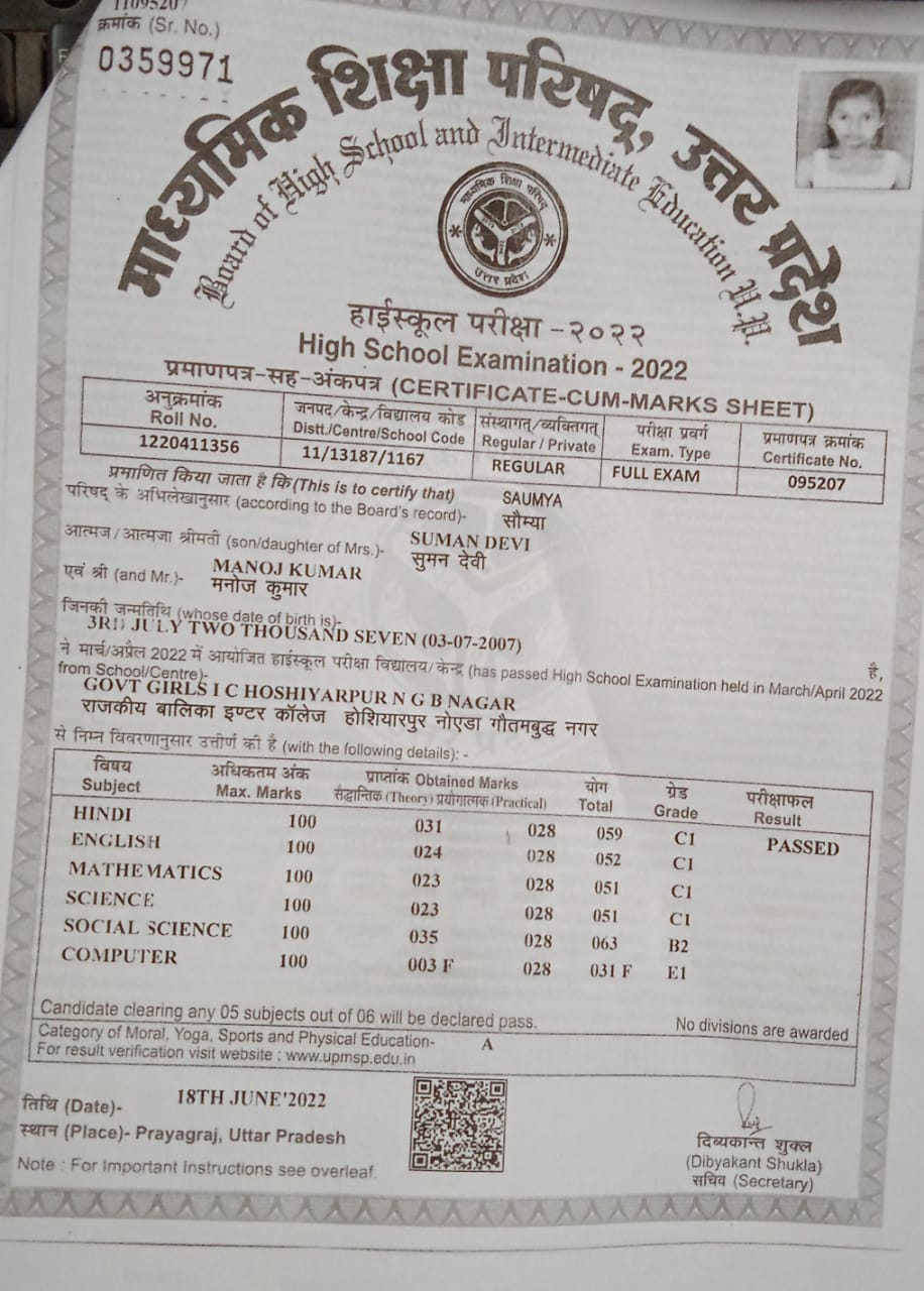 | Exam | Full Marks | Pass Marks | Marks Obtained |