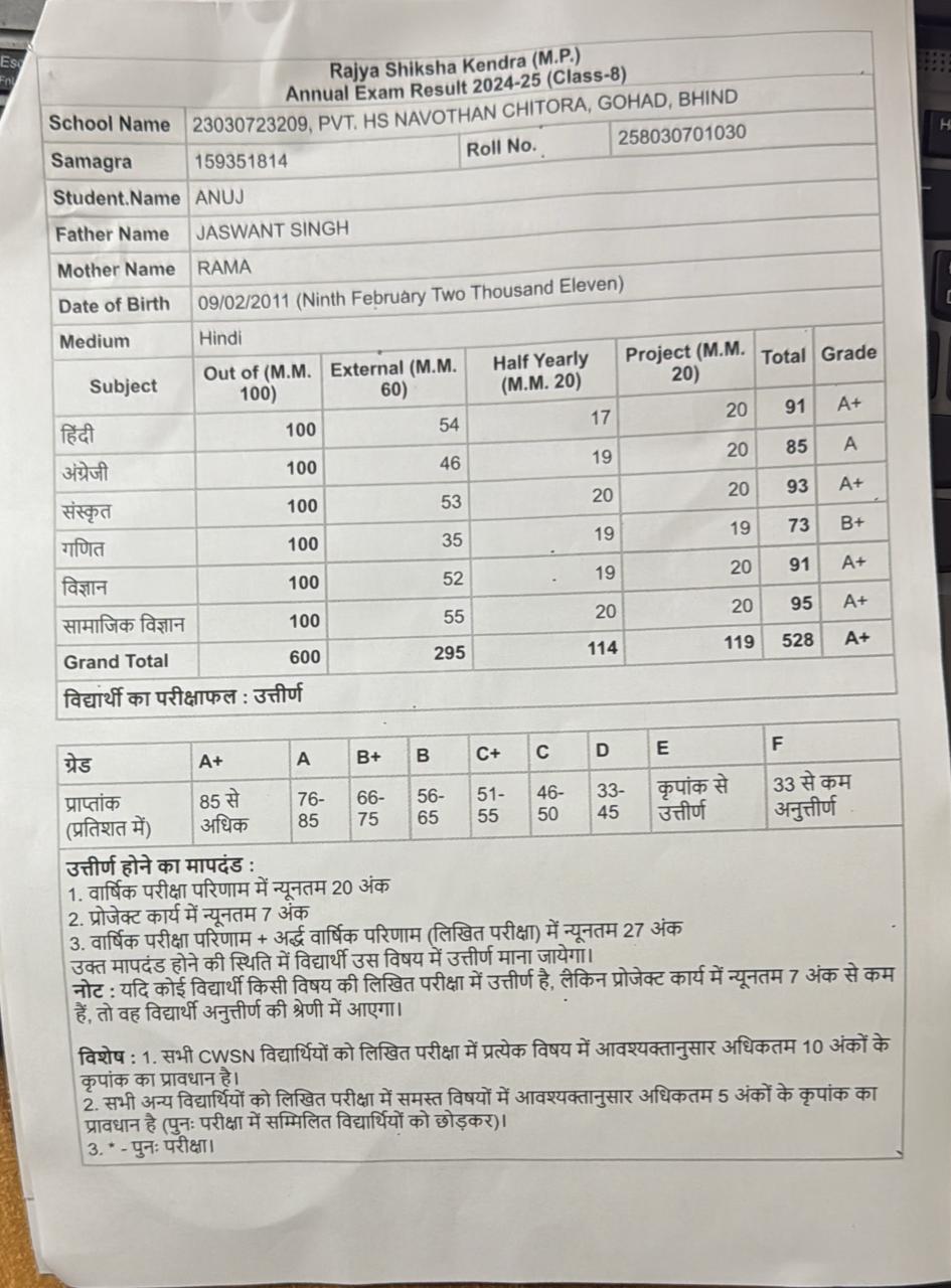 | Exam | Full Marks | Pass Marks | Marks Obtained |