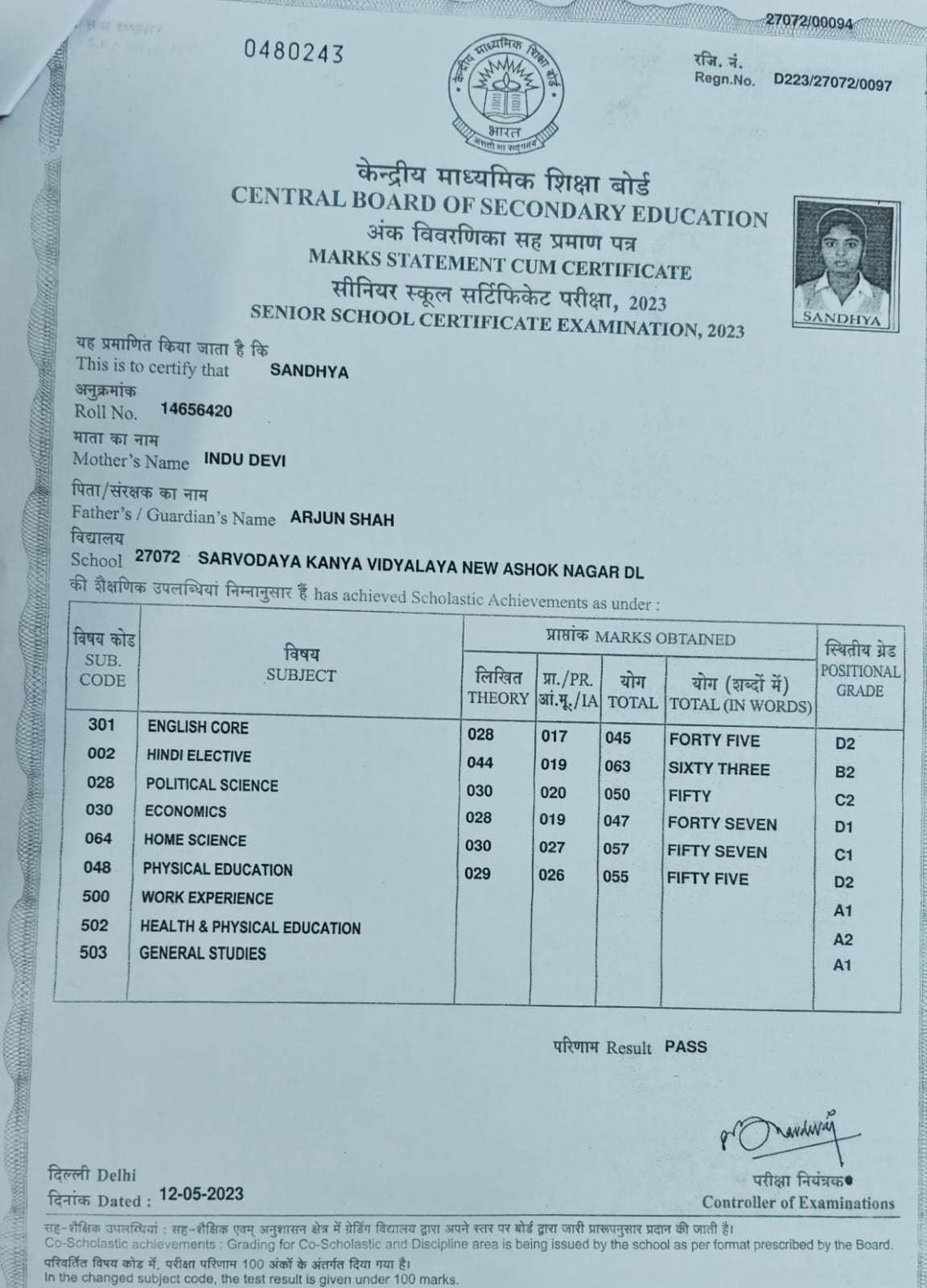 | Exam | Full Marks | Pass Marks | Marks Obtained |