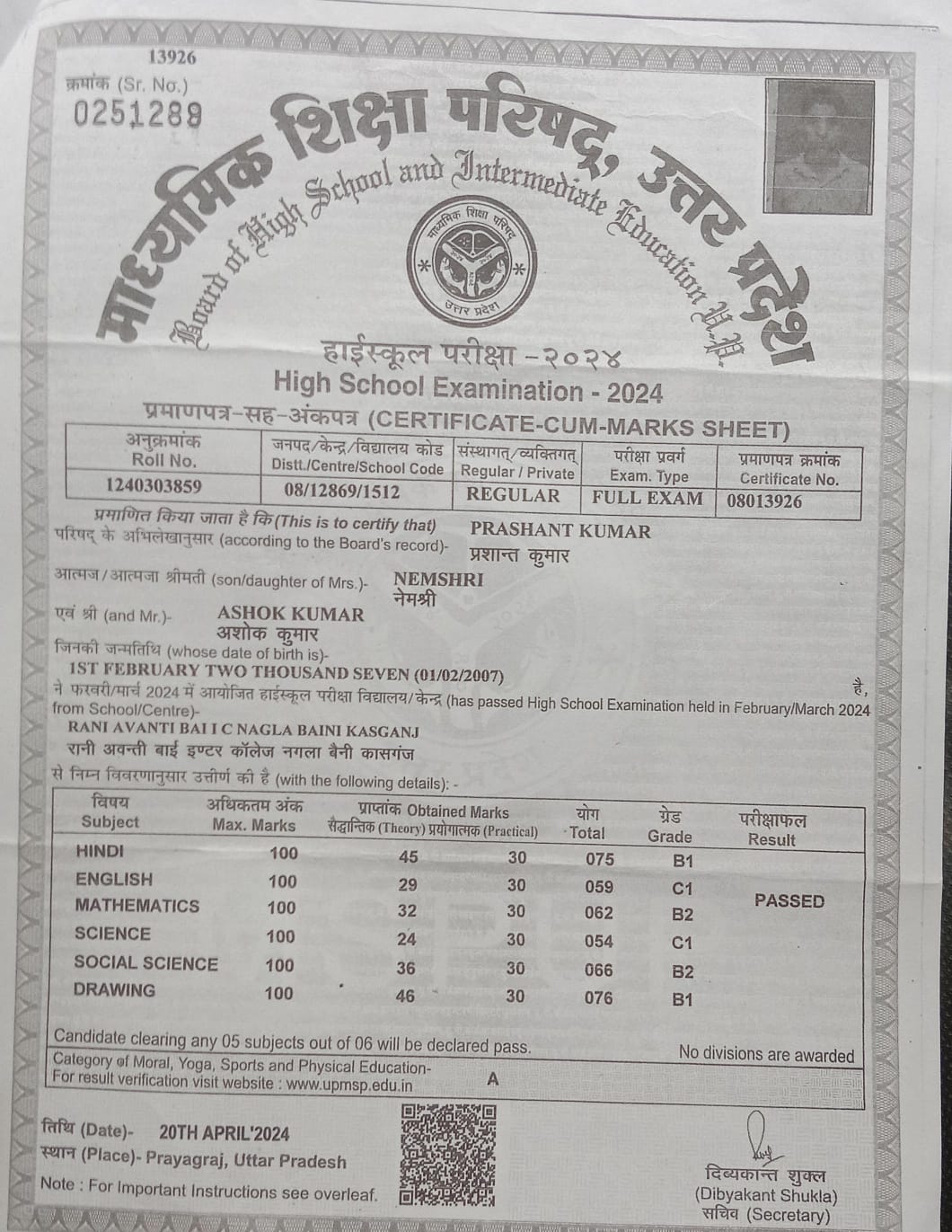 | Exam | Full Marks | Pass Marks | Marks Obtained |