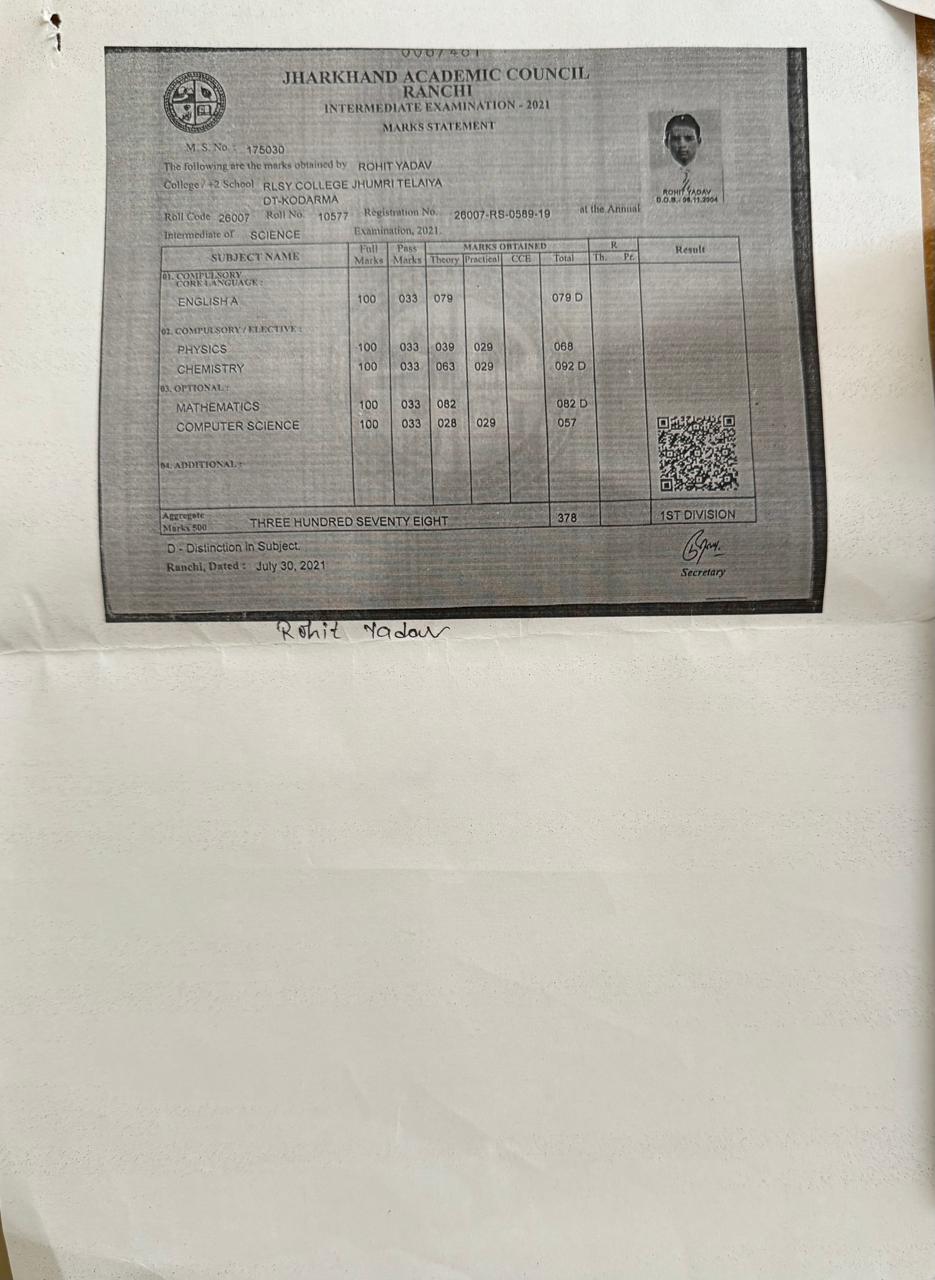 | Exam | Full Marks | Pass Marks | Marks Obtained |