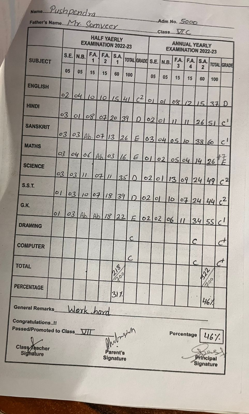 | Exam | Full Marks | Pass Marks | Marks Obtained |