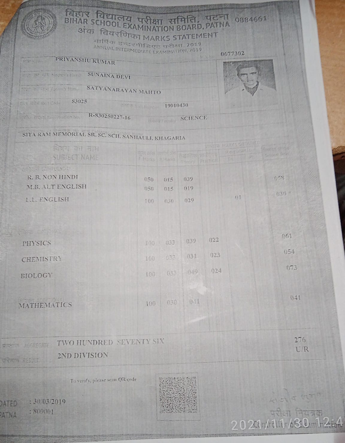 | Exam | Full Marks | Pass Marks | Marks Obtained |
