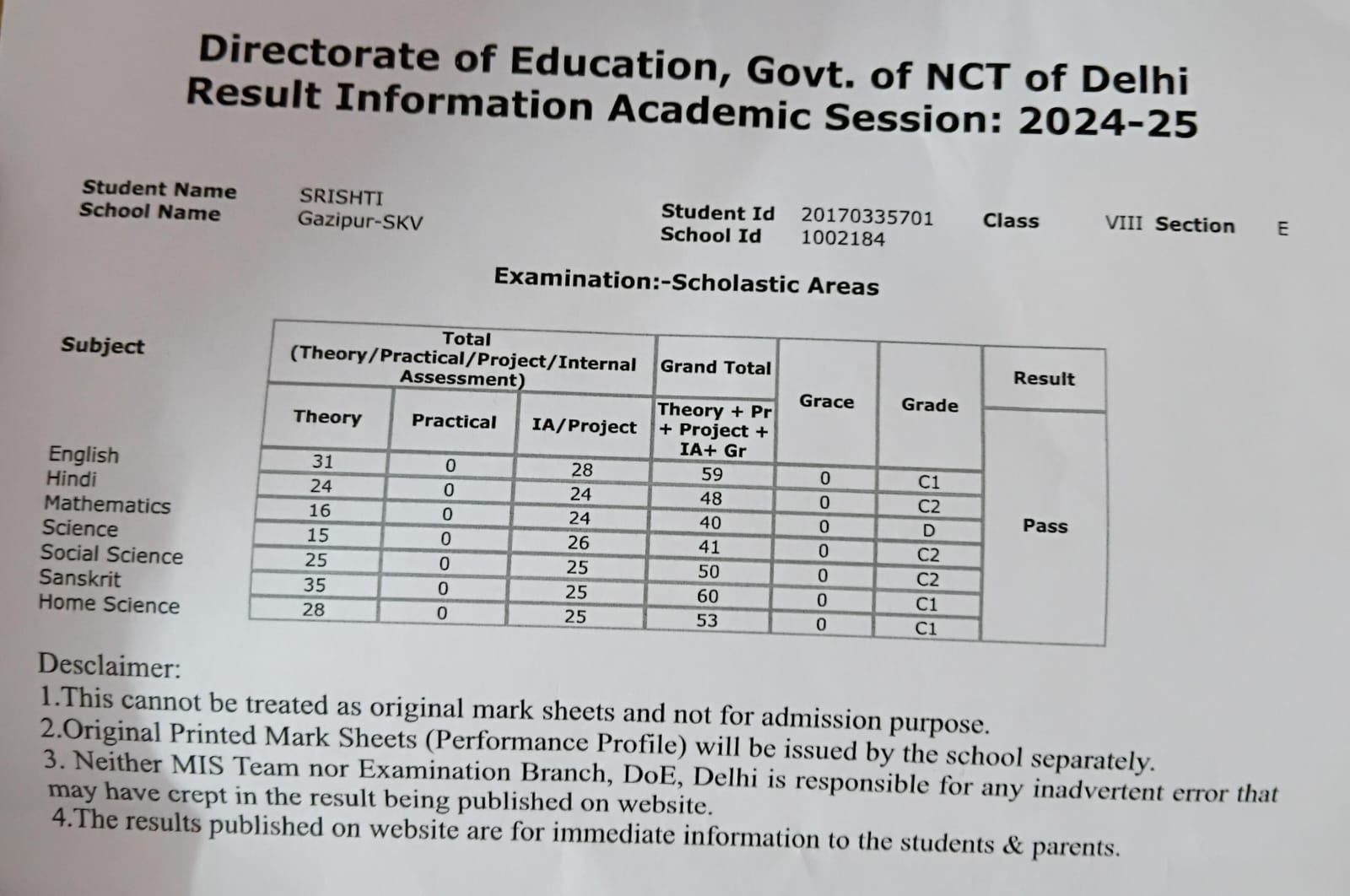 | Exam | Full Marks | Pass Marks | Marks Obtained |