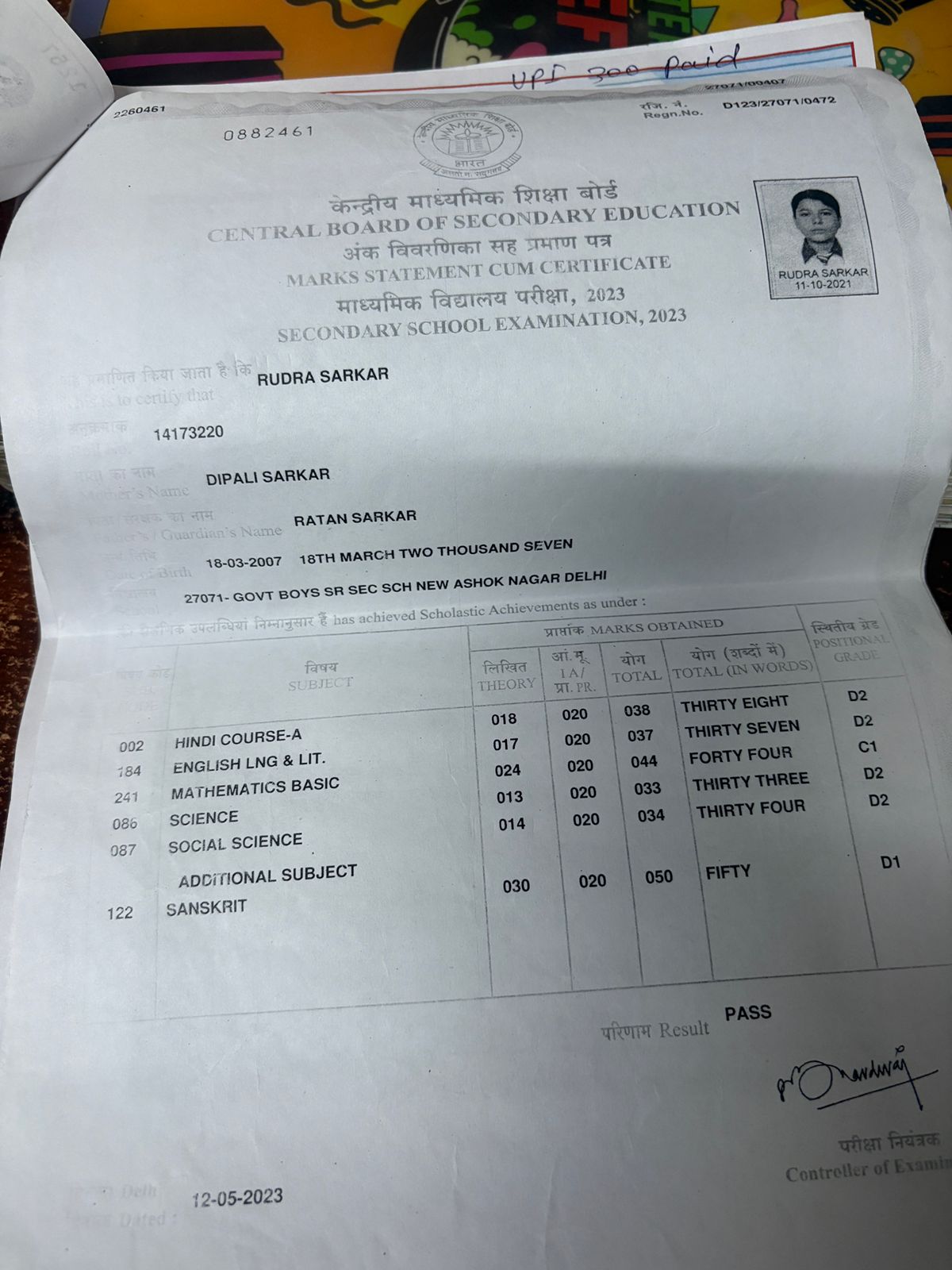 | Exam | Full Marks | Pass Marks | Marks Obtained |