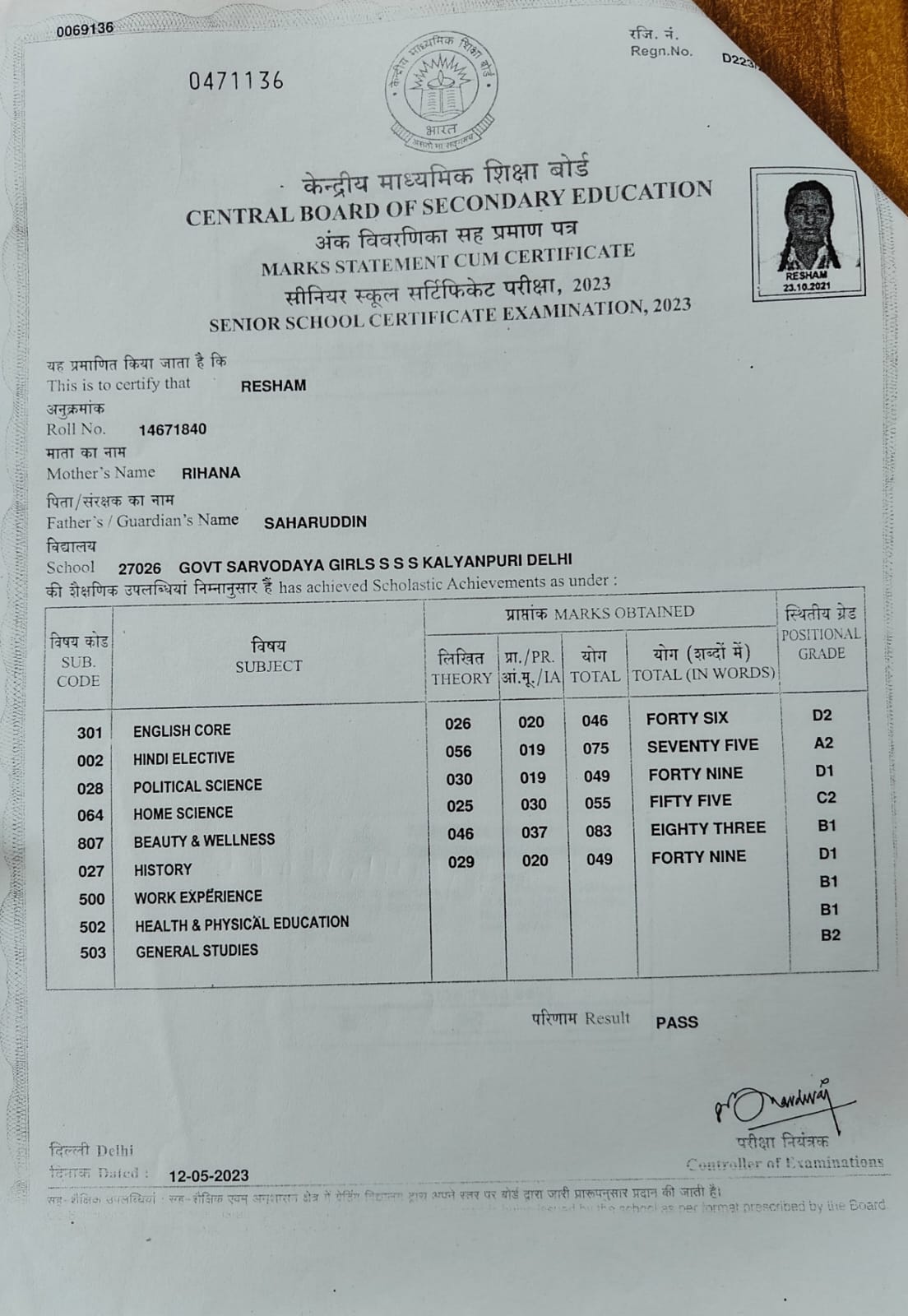 | Exam | Full Marks | Pass Marks | Marks Obtained |