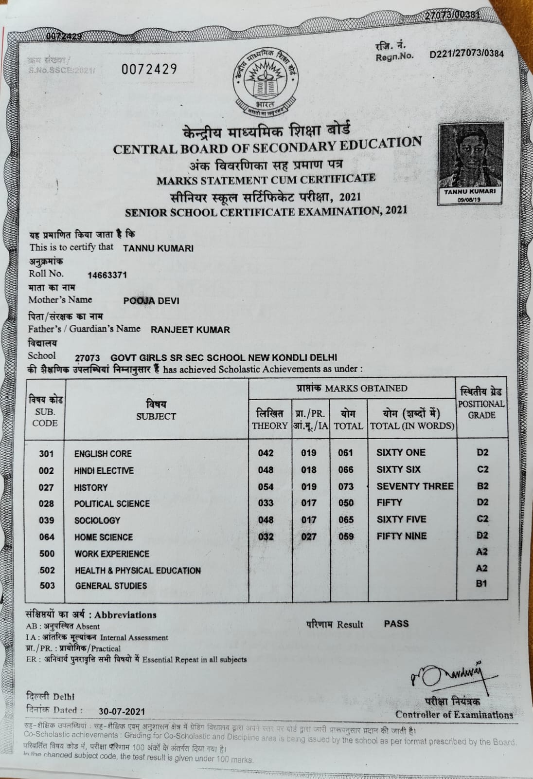| Exam | Full Marks | Pass Marks | Marks Obtained |
