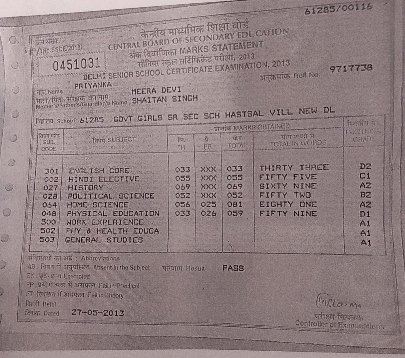 | Exam | Full Marks | Pass Marks | Marks Obtained |