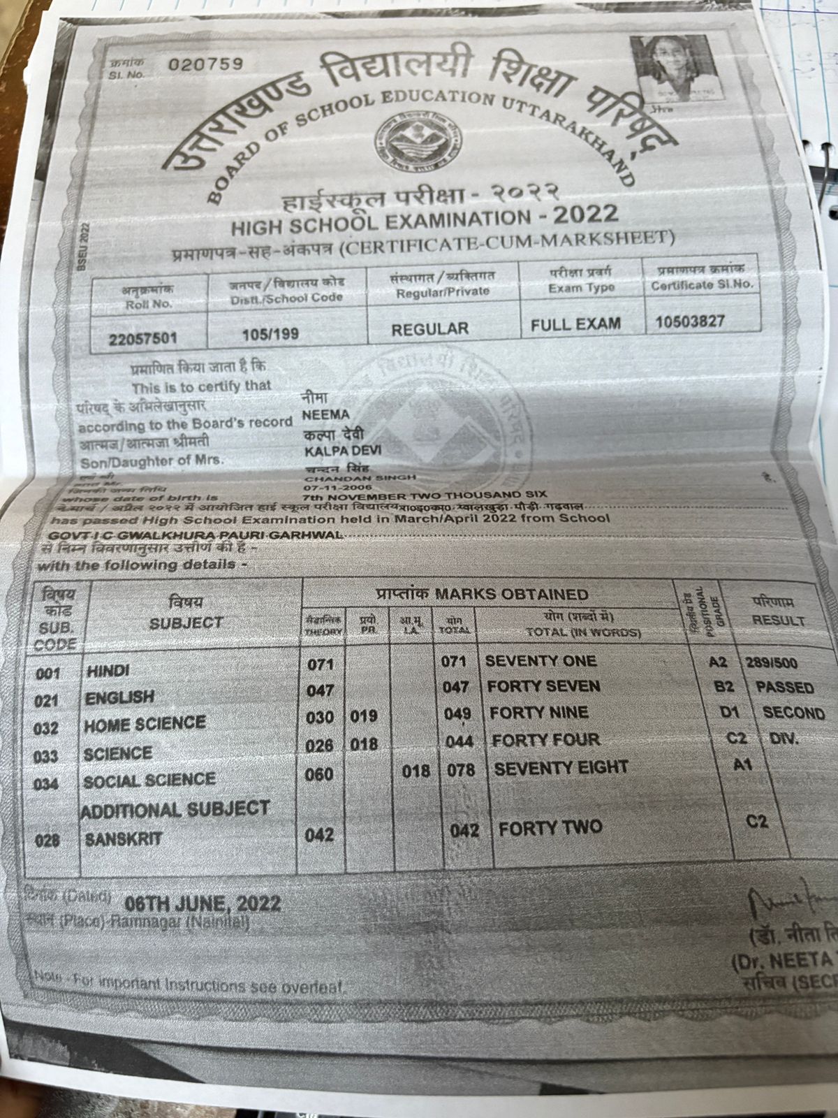 | Exam | Full Marks | Pass Marks | Marks Obtained |