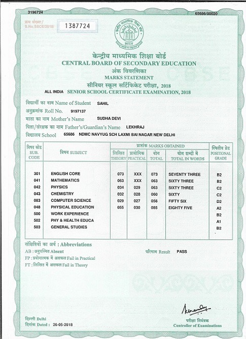 | Exam | Full Marks | Pass Marks | Marks Obtained |