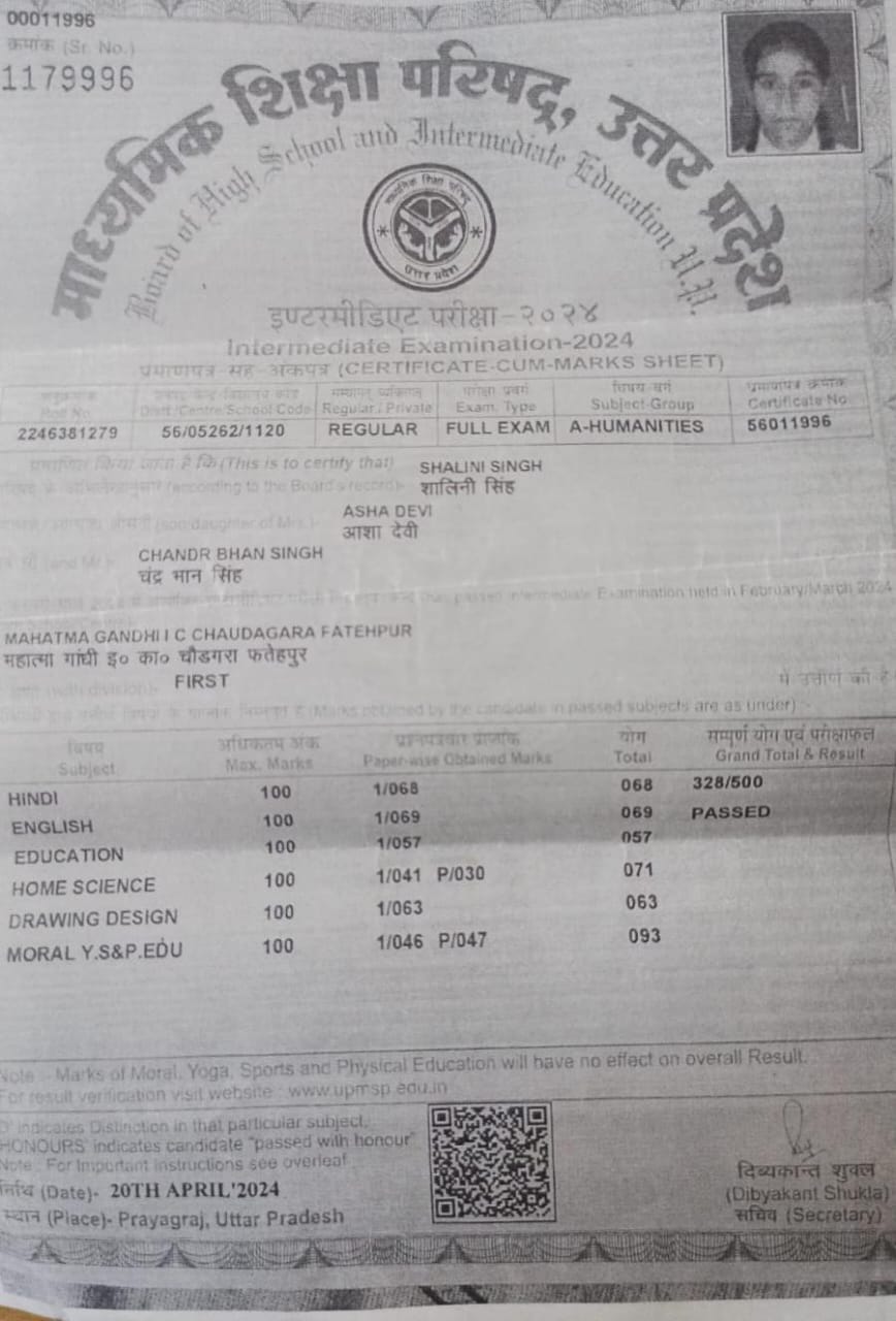 | Exam | Full Marks | Pass Marks | Marks Obtained |