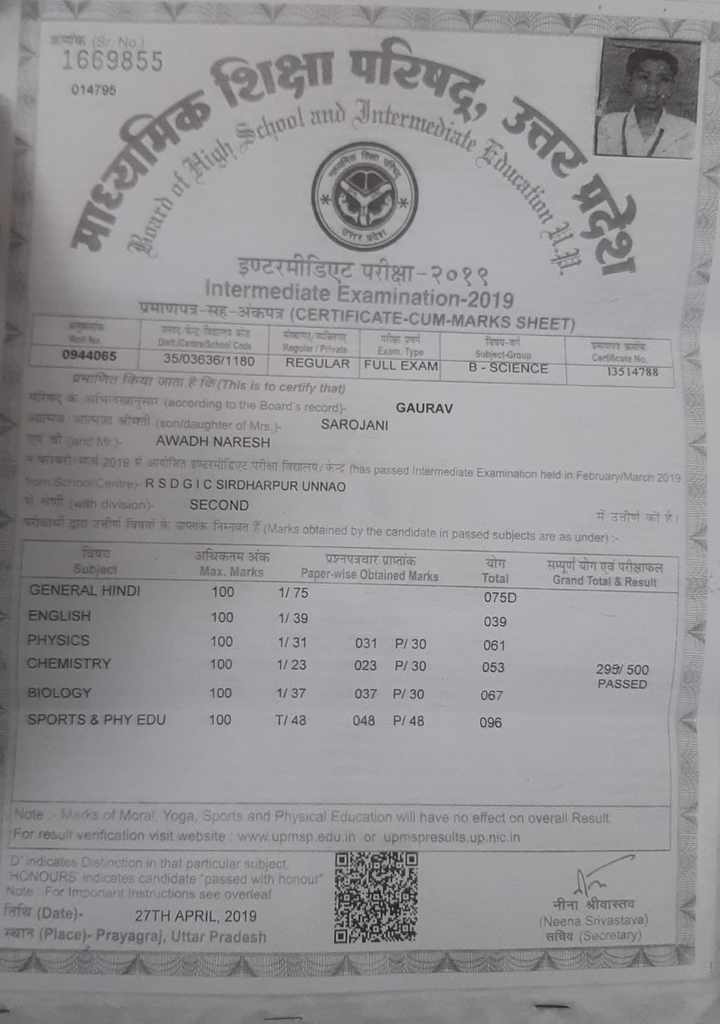 | Exam | Full Marks | Pass Marks | Marks Obtained |