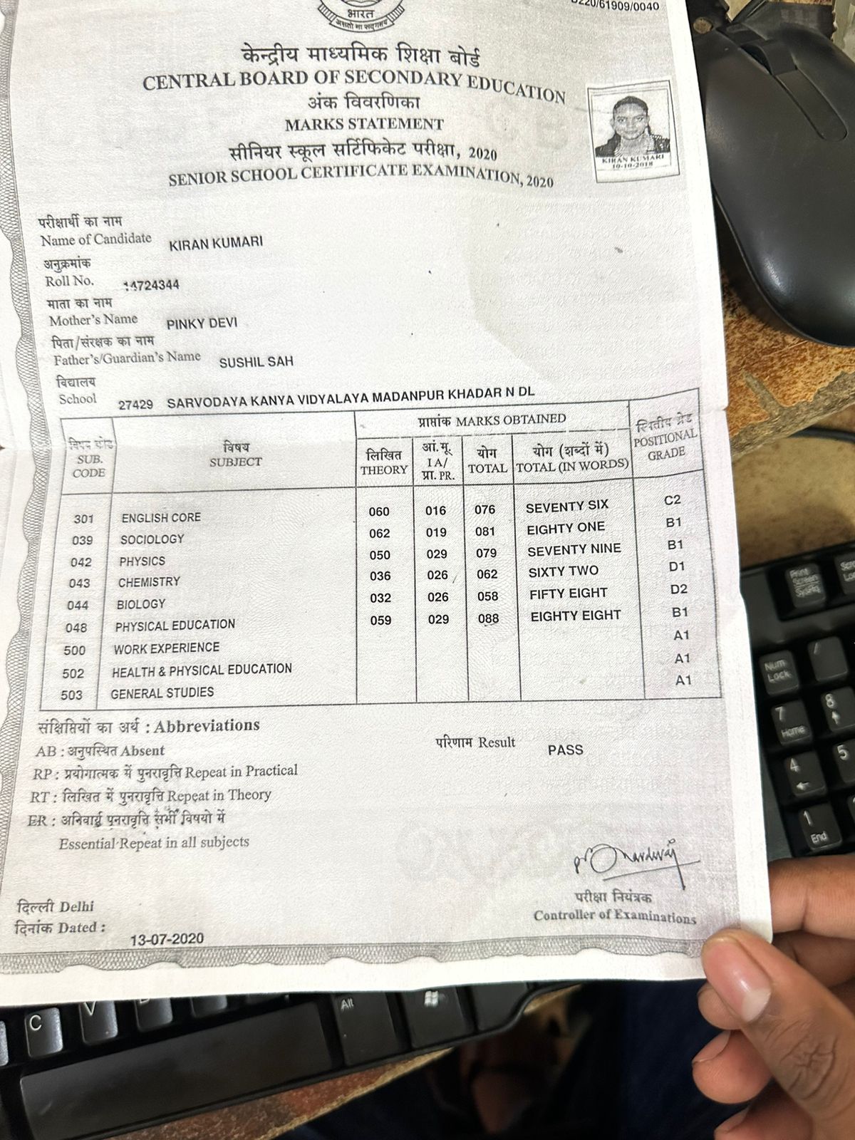 | Exam | Full Marks | Pass Marks | Marks Obtained |