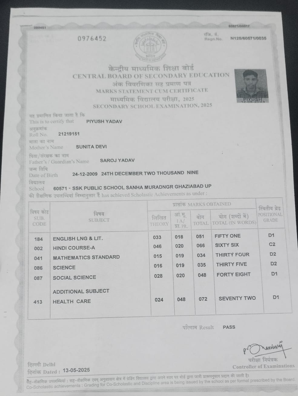 | Exam | Full Marks | Pass Marks | Marks Obtained |