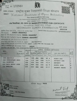 | Exam | Full Marks | Pass Marks | Marks Obtained |