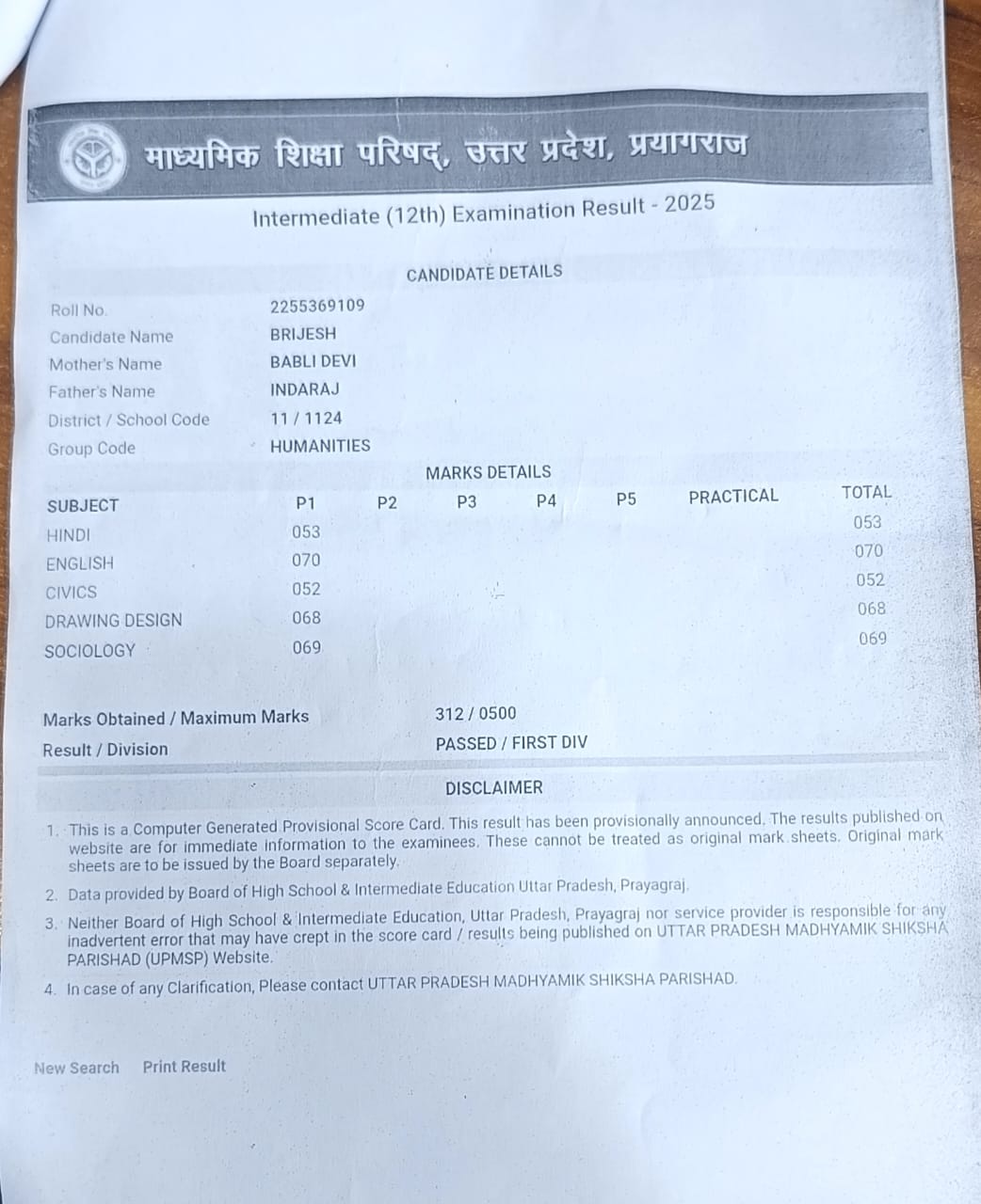 | Exam | Full Marks | Pass Marks | Marks Obtained |