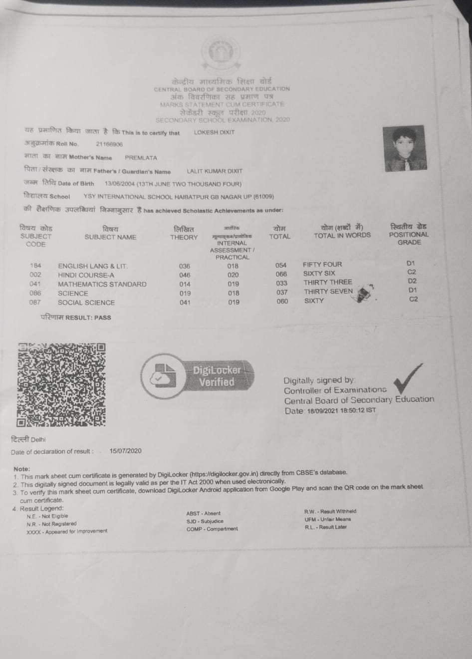 | Exam | Full Marks | Pass Marks | Marks Obtained |