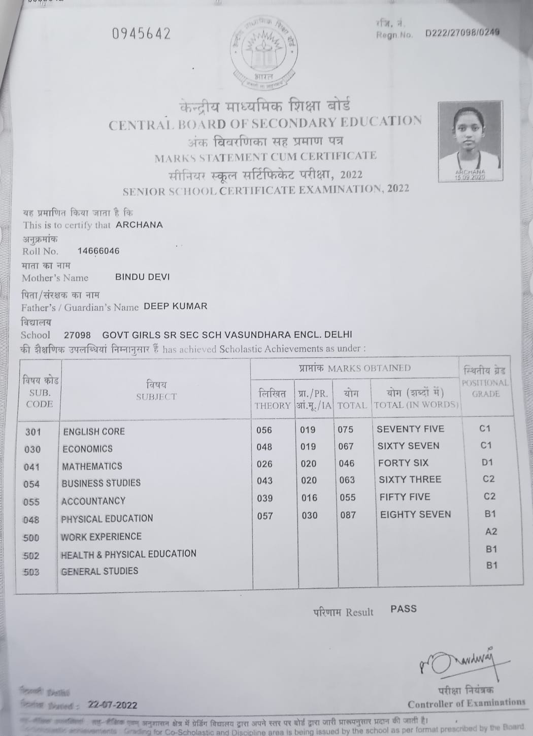 | Exam | Full Marks | Pass Marks | Marks Obtained |