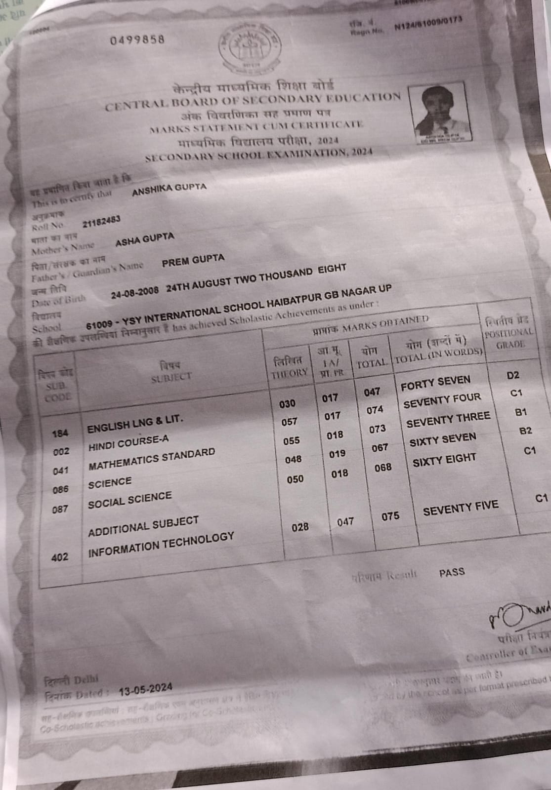 | Exam | Full Marks | Pass Marks | Marks Obtained |