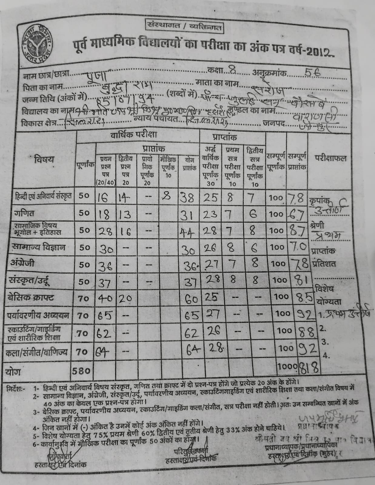 | Exam | Full Marks | Pass Marks | Marks Obtained |