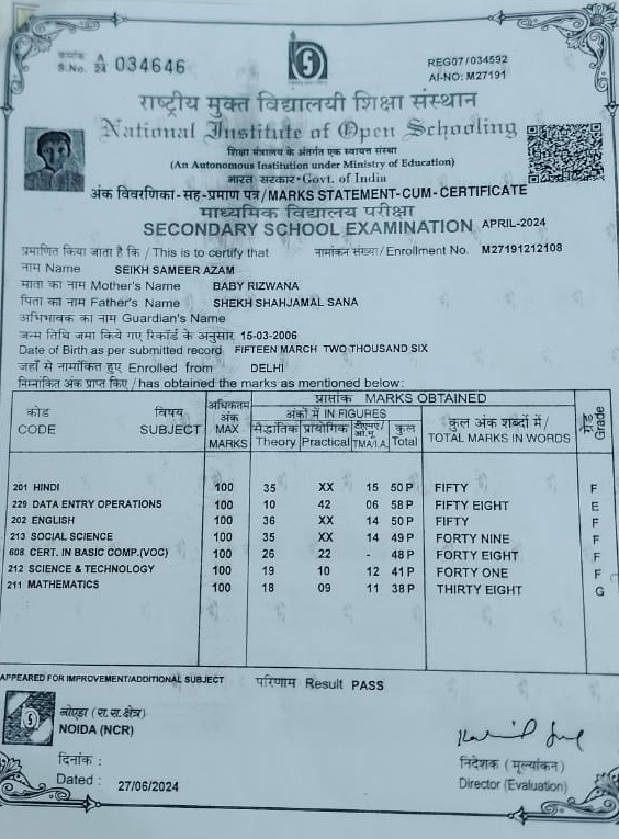 | Exam | Full Marks | Pass Marks | Marks Obtained |