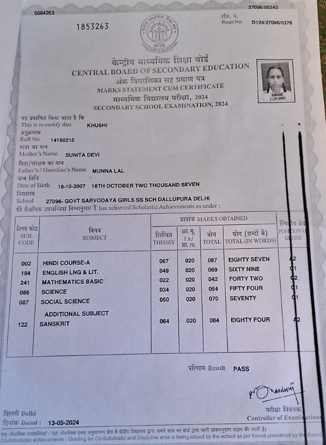 | Exam | Full Marks | Pass Marks | Marks Obtained |