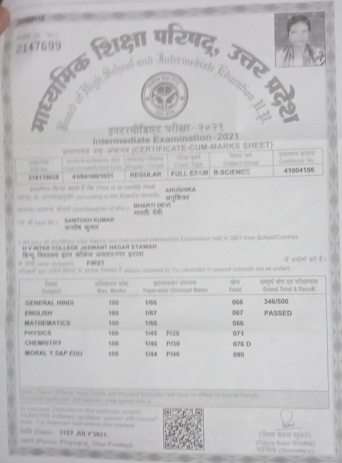 | Exam | Full Marks | Pass Marks | Marks Obtained |
