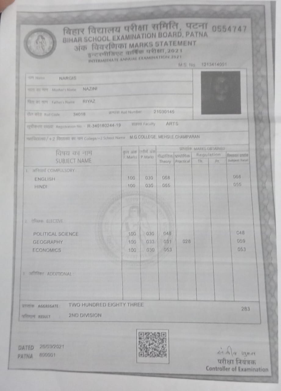 | Exam | Full Marks | Pass Marks | Marks Obtained |