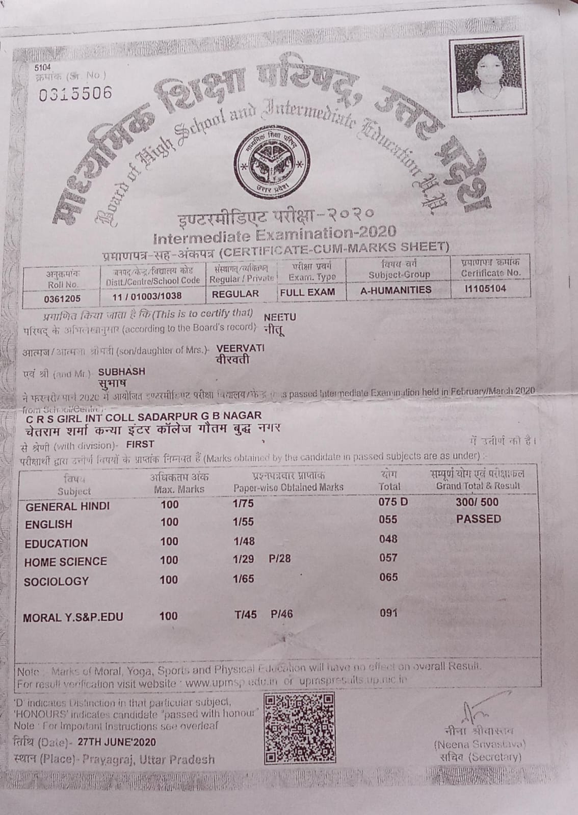 | Exam | Full Marks | Pass Marks | Marks Obtained |