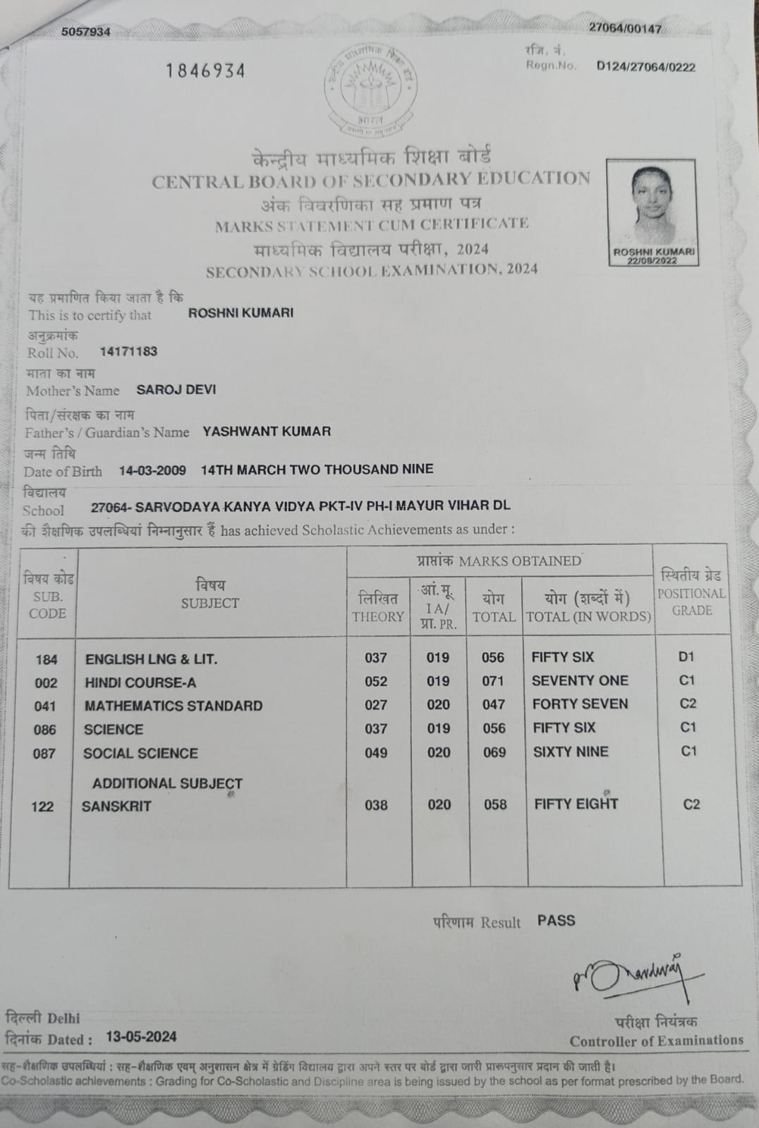 | Exam | Full Marks | Pass Marks | Marks Obtained |
