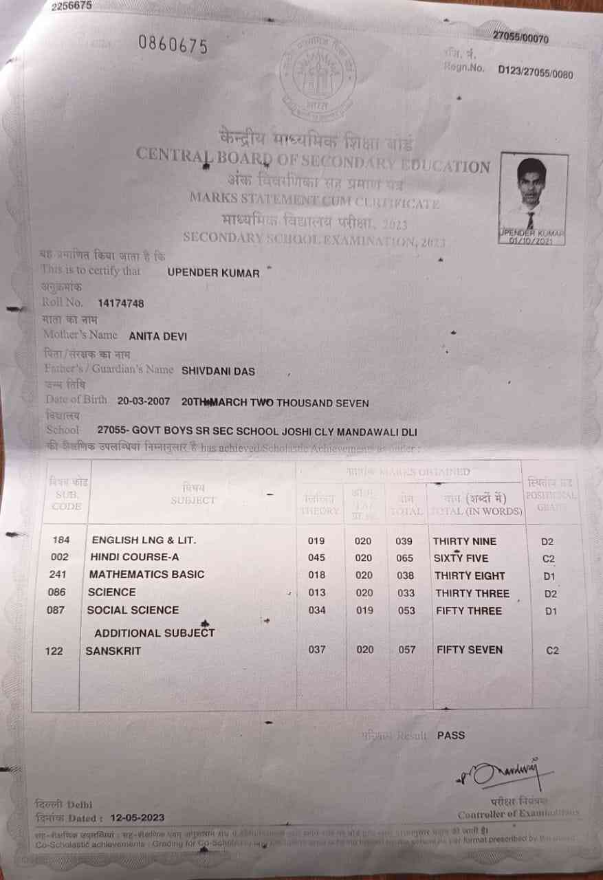 | Exam | Full Marks | Pass Marks | Marks Obtained |