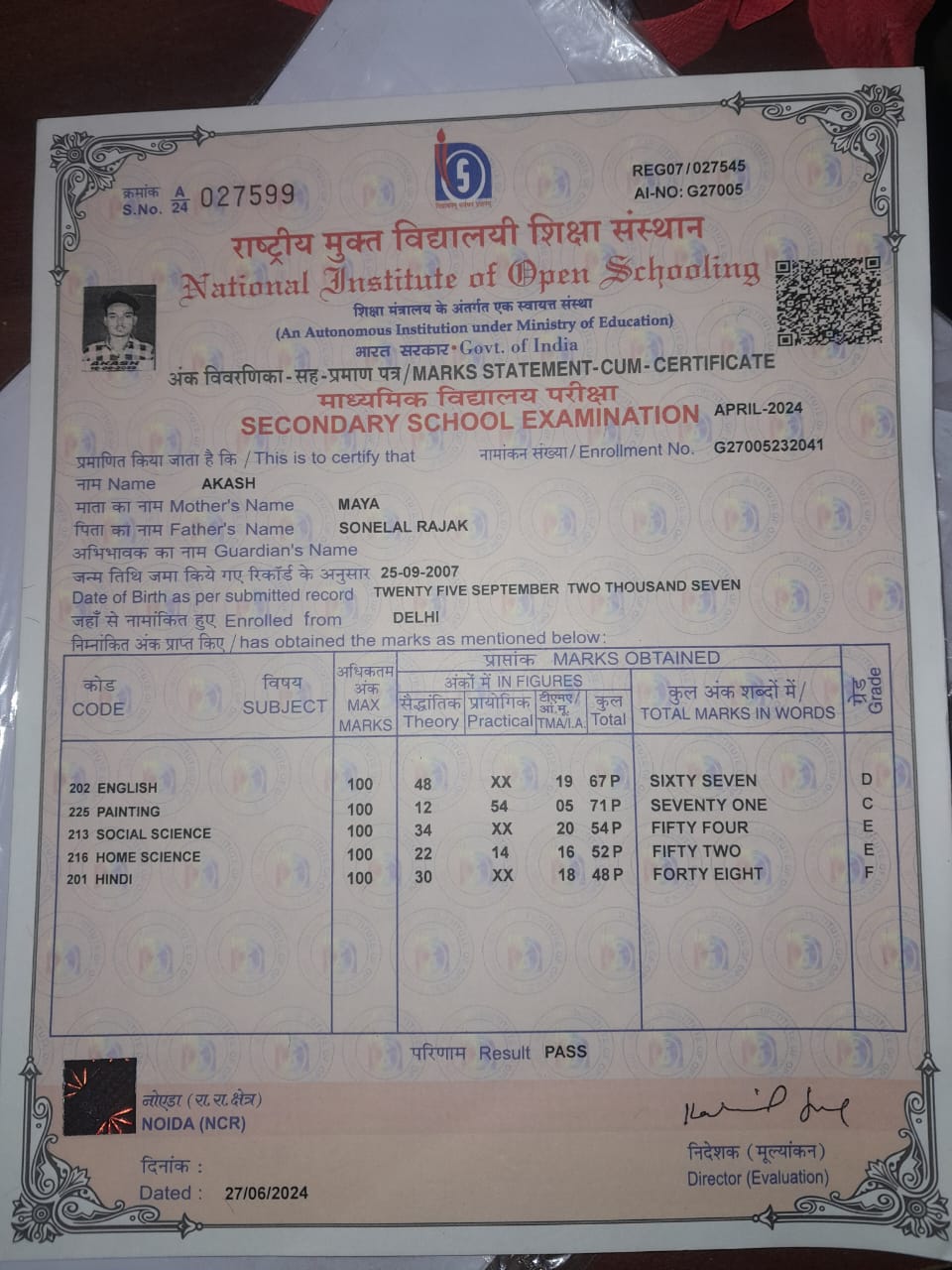 | Exam | Full Marks | Pass Marks | Marks Obtained |