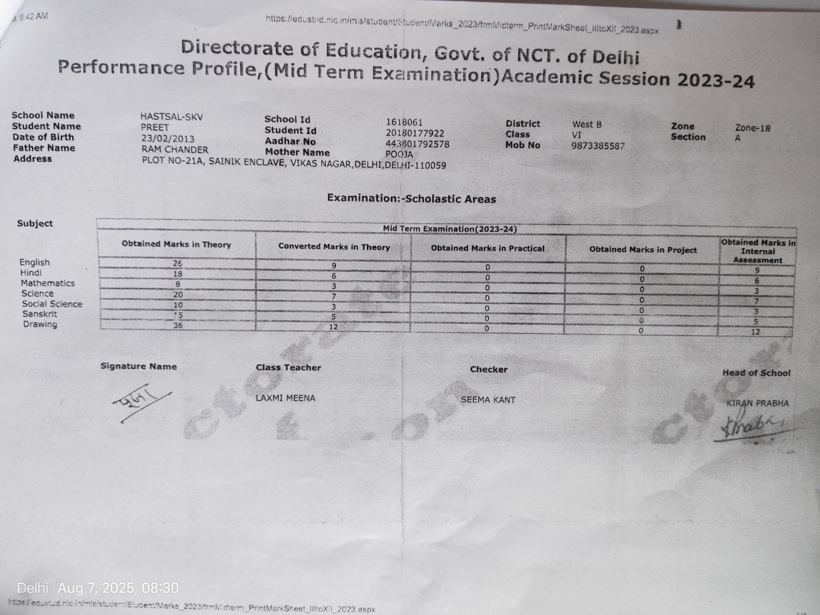 | Exam | Full Marks | Pass Marks | Marks Obtained |
