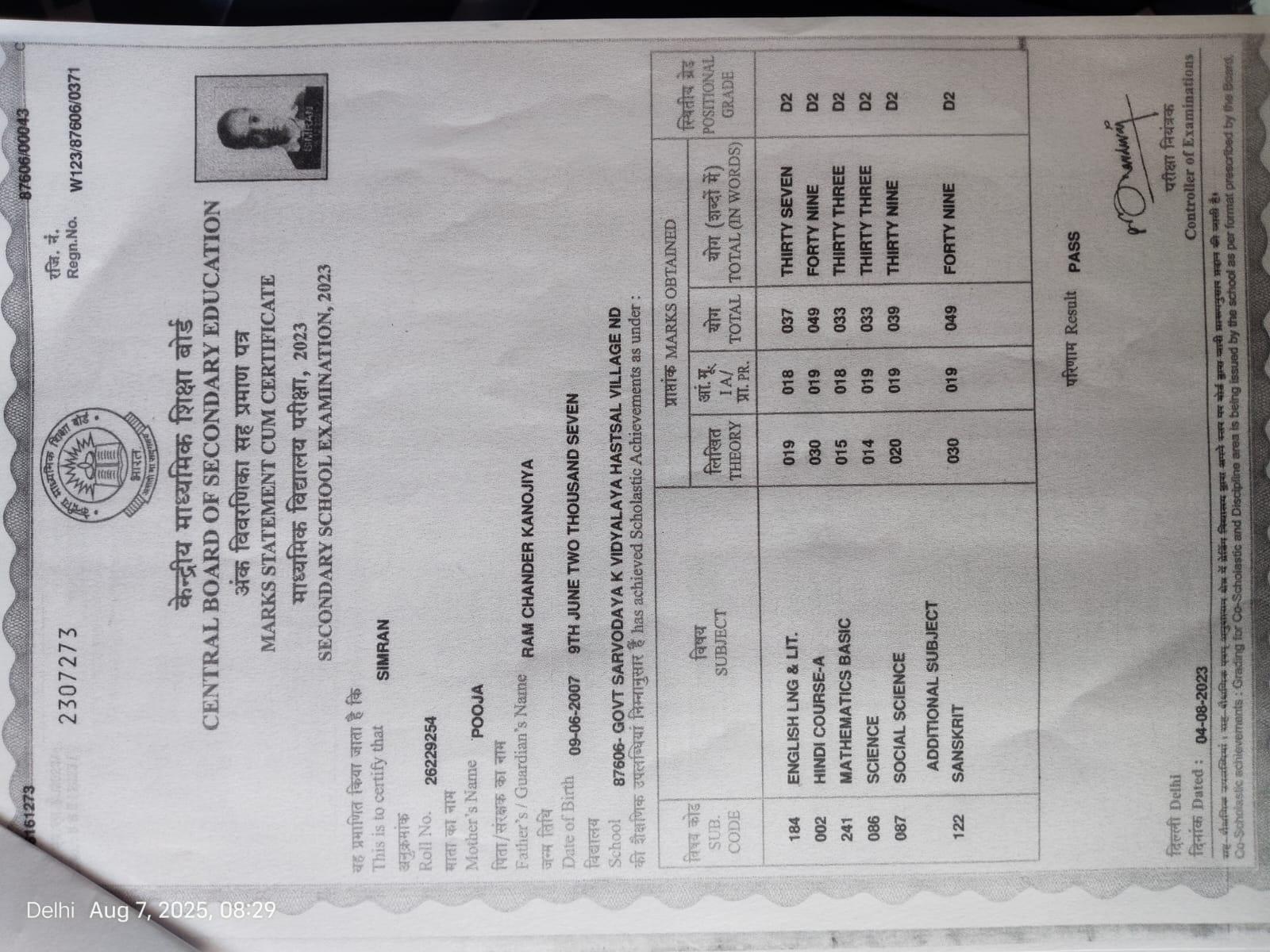 | Exam | Full Marks | Pass Marks | Marks Obtained |