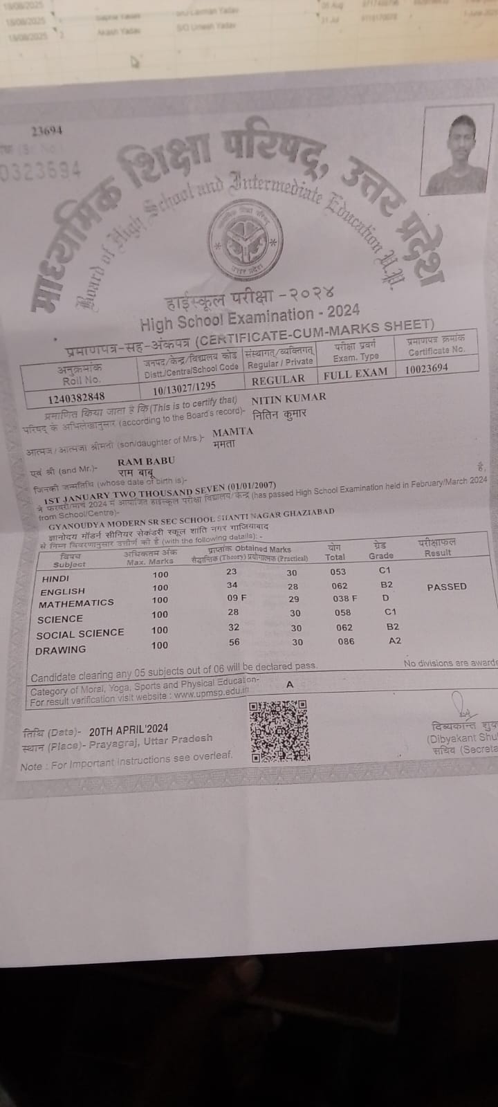 | Exam | Full Marks | Pass Marks | Marks Obtained |