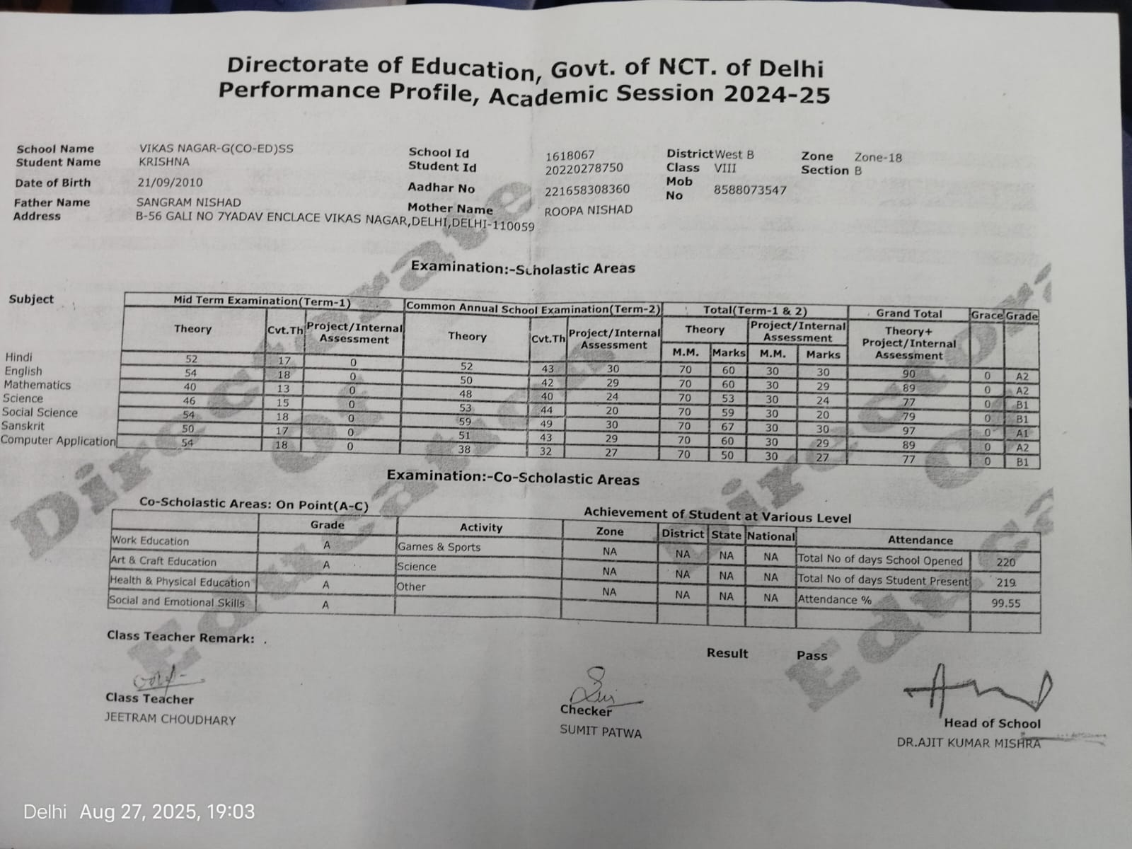 | Exam | Full Marks | Pass Marks | Marks Obtained |