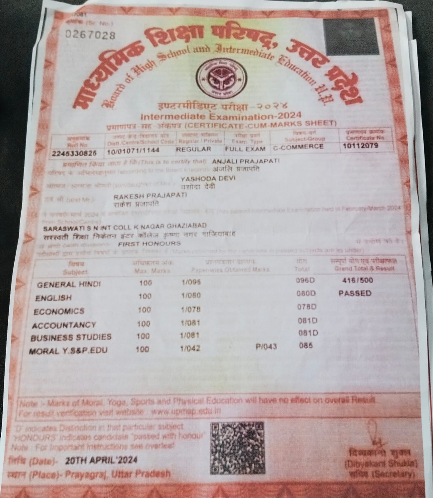 | Exam | Full Marks | Pass Marks | Marks Obtained |
