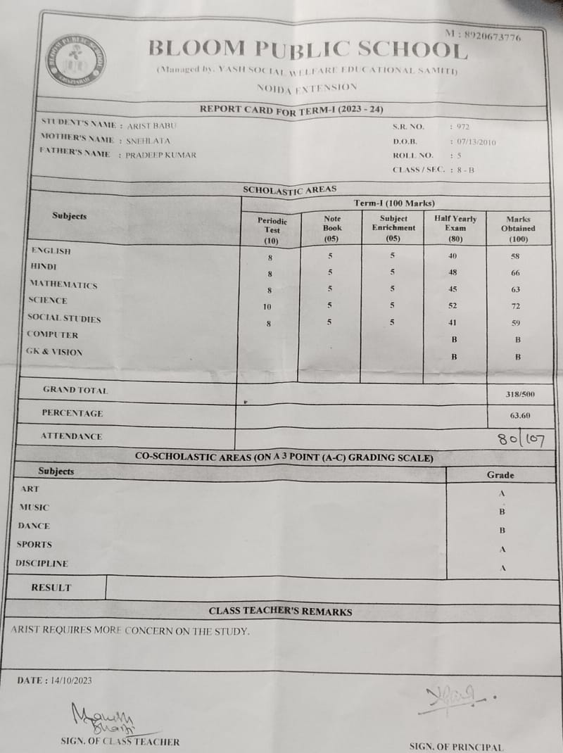 | Exam | Full Marks | Pass Marks | Marks Obtained |