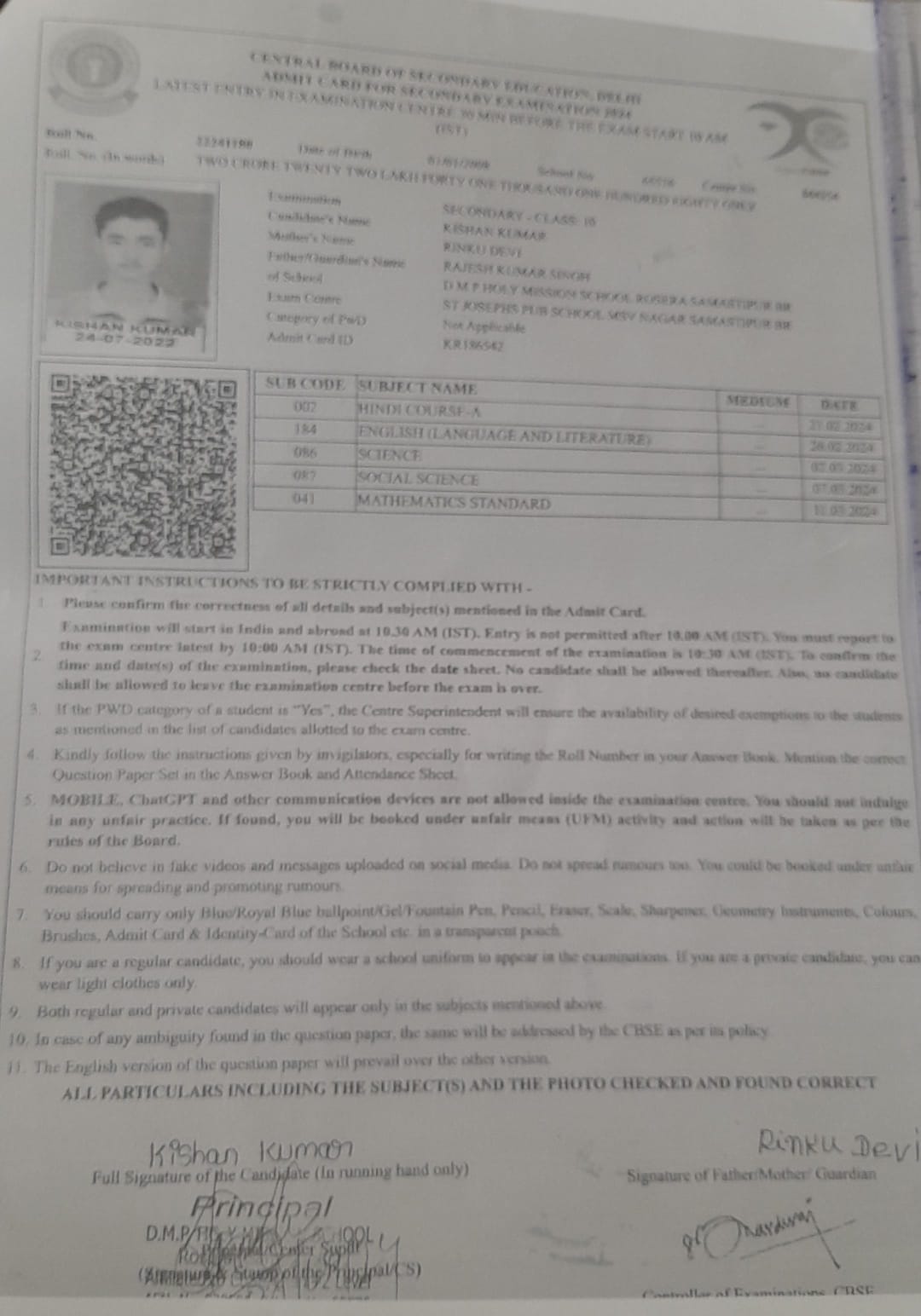 | Exam | Full Marks | Pass Marks | Marks Obtained |