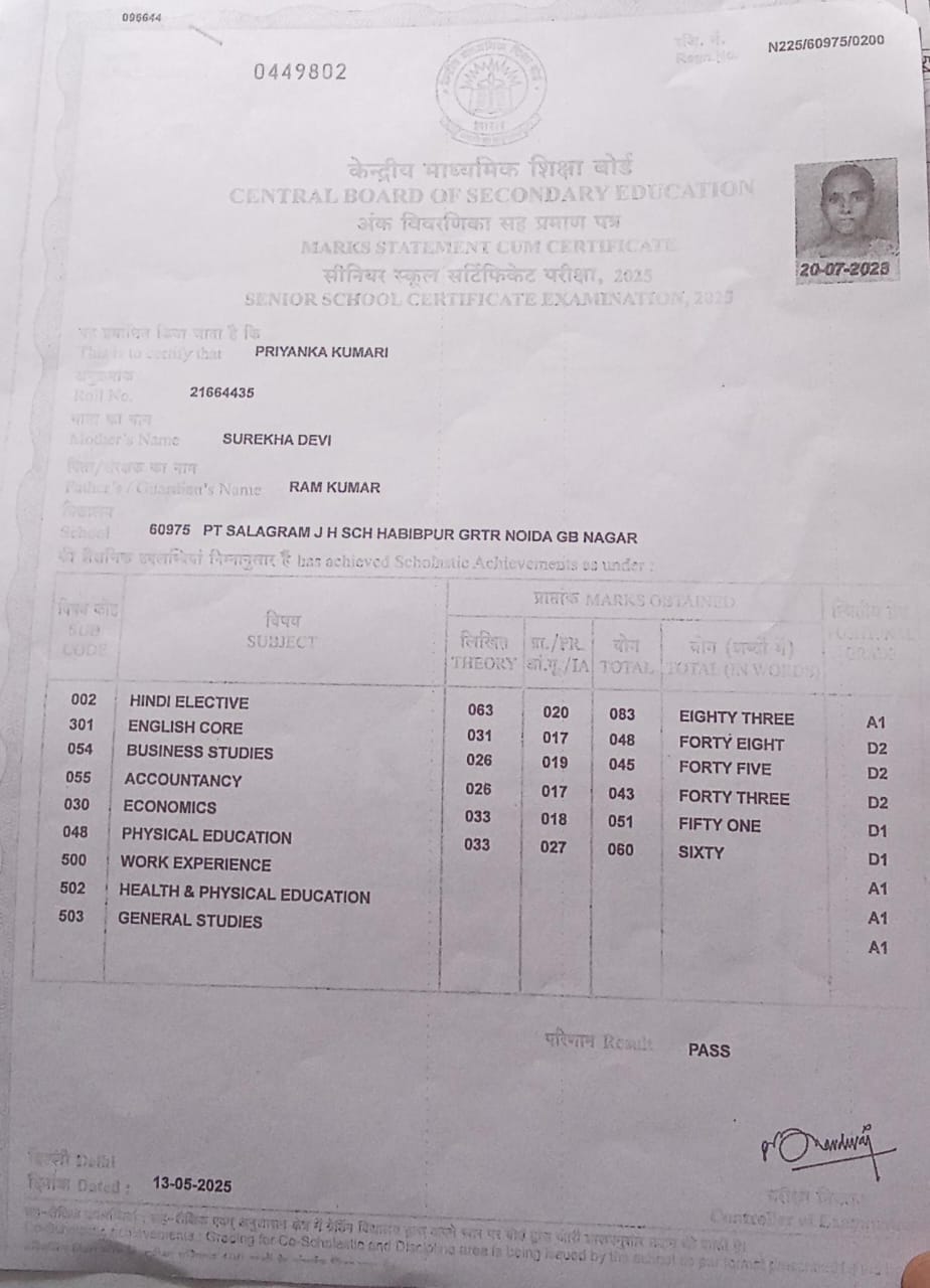 | Exam | Full Marks | Pass Marks | Marks Obtained |