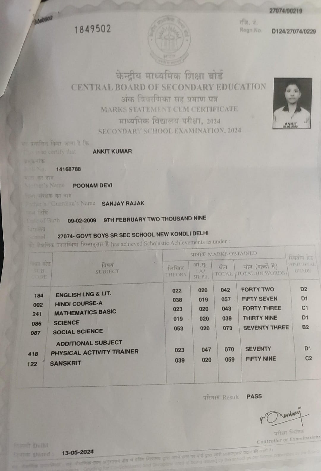 | Exam | Full Marks | Pass Marks | Marks Obtained |