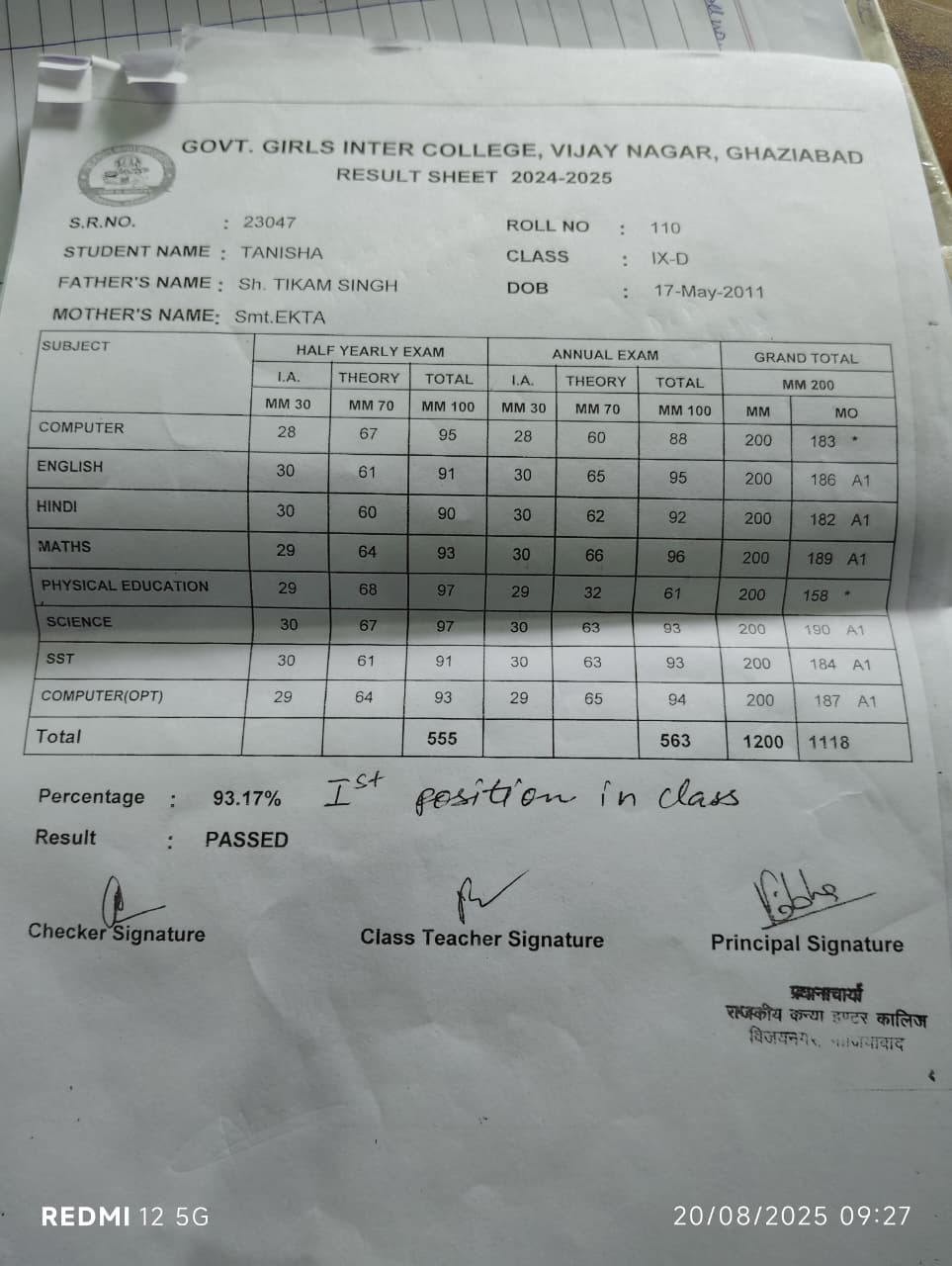 | Exam | Full Marks | Pass Marks | Marks Obtained |