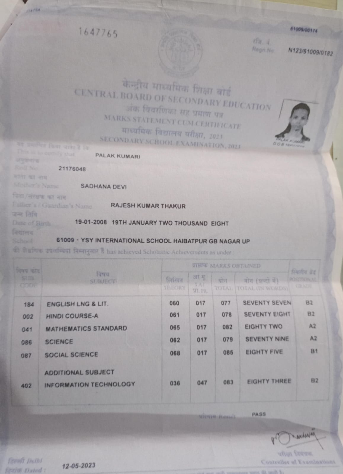 | Exam | Full Marks | Pass Marks | Marks Obtained |