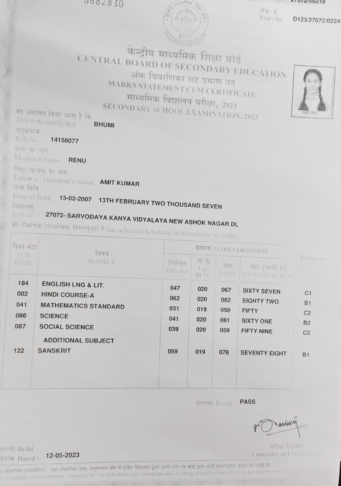 | Exam | Full Marks | Pass Marks | Marks Obtained |