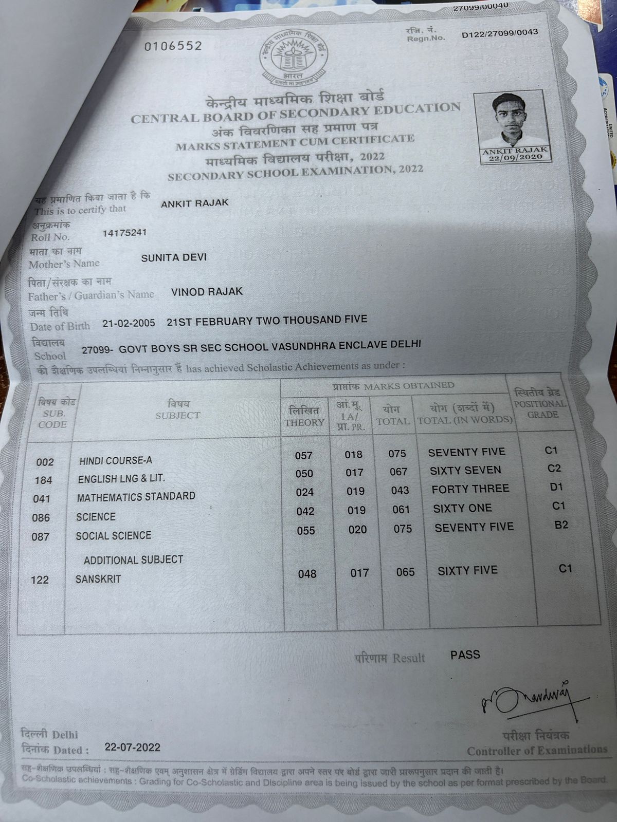| Exam | Full Marks | Pass Marks | Marks Obtained |