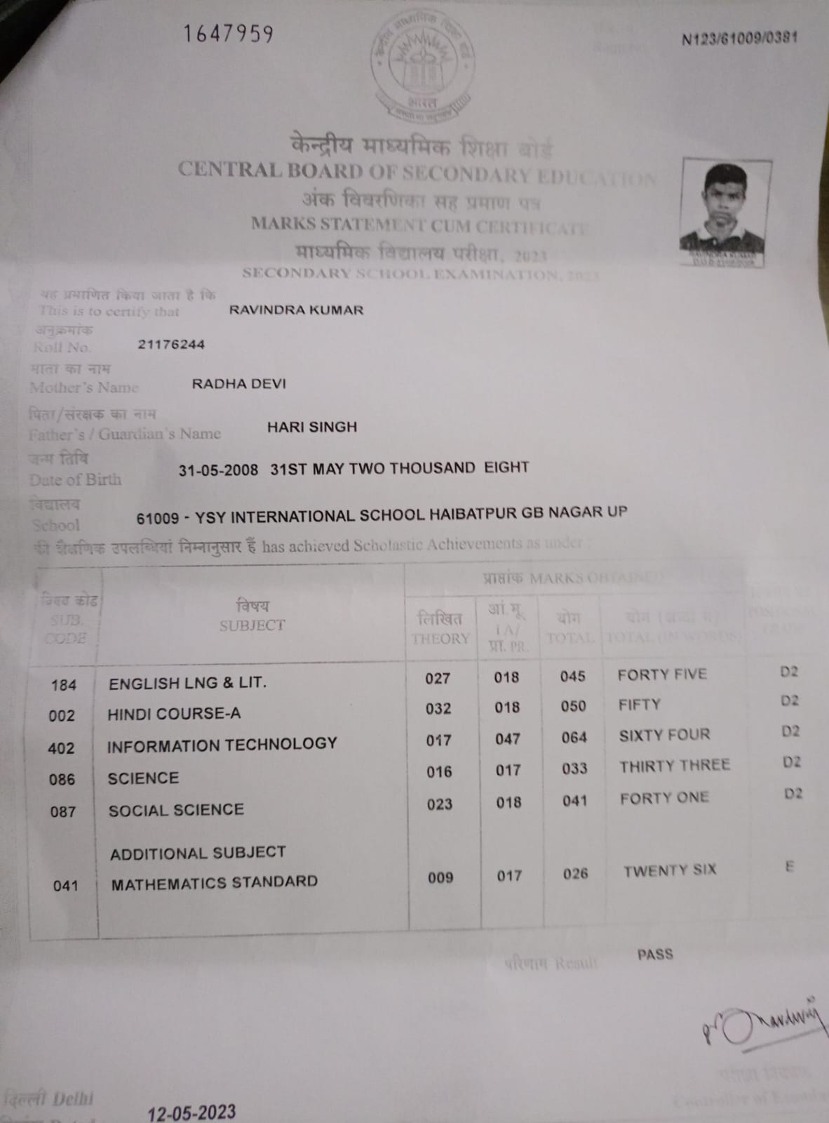 | Exam | Full Marks | Pass Marks | Marks Obtained |